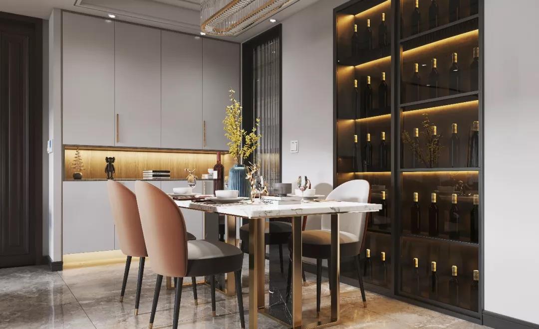 在全鋁餐邊柜的中間增加嵌入酒瓶的網格架